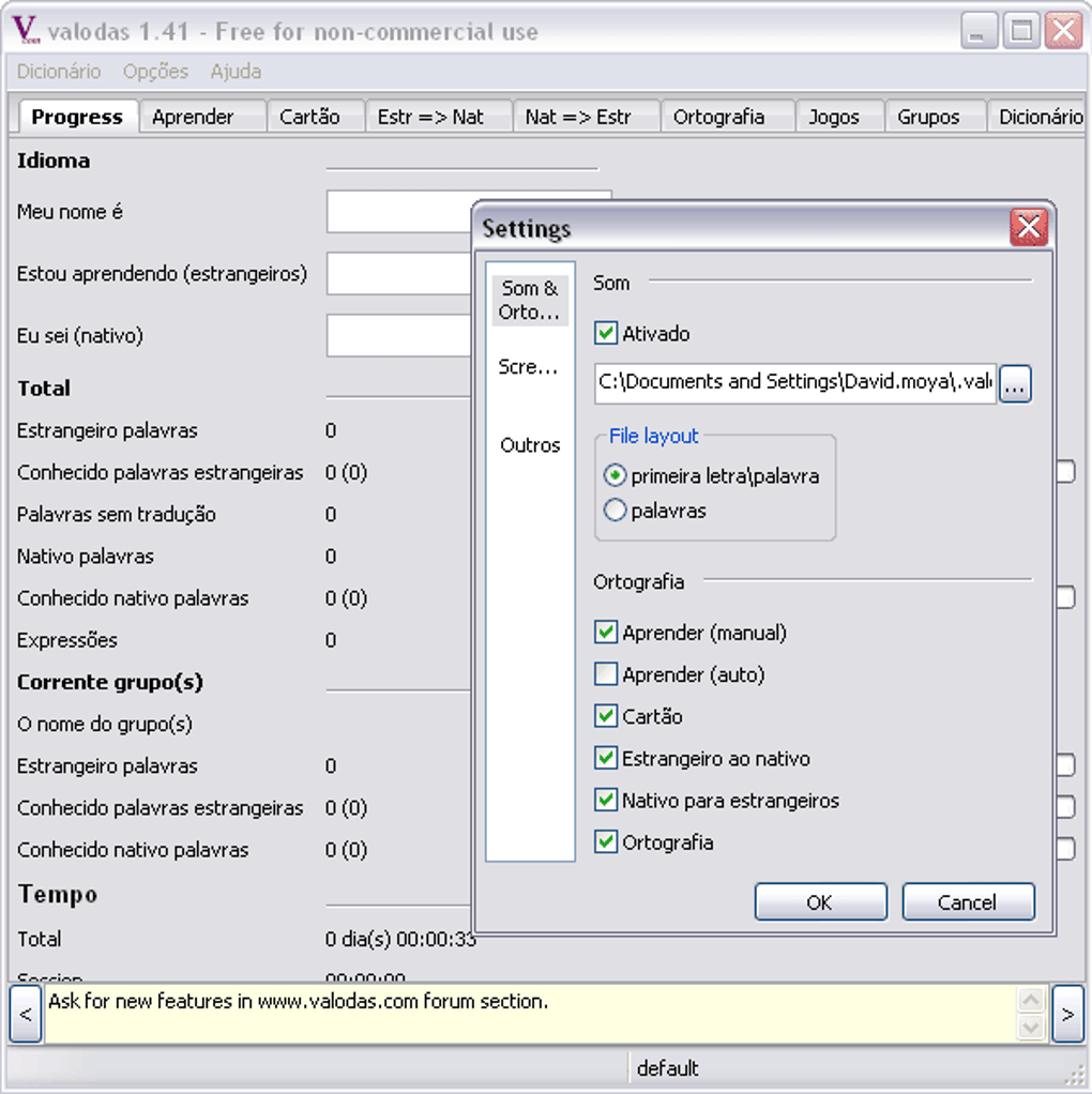 Para o Valodas funcionar antes é preciso baixar os dicionários das línguas que você quiser. A lista de idiomas disponíveis é grande. Abra o menu "Dicionário" para obter os arquivos necessários na página do programa e instalar. Instale o Valodas e aprenda jogando. Are you ready?